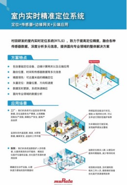 村田還研發了室內實時精準定位系統,致力于提高定位精度。此套系統包含基礎定位設備、邊緣計算網關以及云端應用,融合了位置、時間和傳感器數據等多元信息,定位精度可達厘米級,能夠提供面向工廠、醫院等專業領域的整體解決方案。