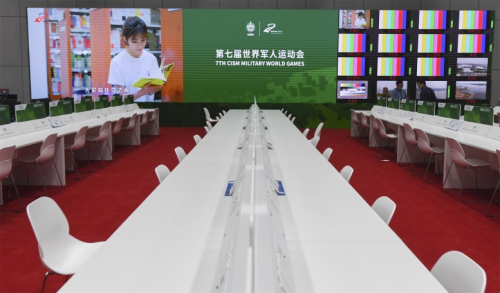 第七屆世界軍運會主媒體中心與主場館毗鄰,總建筑面積2.3萬平方米,是媒體記者參加新聞發布會、制作文字圖片視頻新聞、對外發稿的主要陣地,整個主媒體中心把媒體融合理念貫穿到了設計、施工的每一個環節,科技含量高。