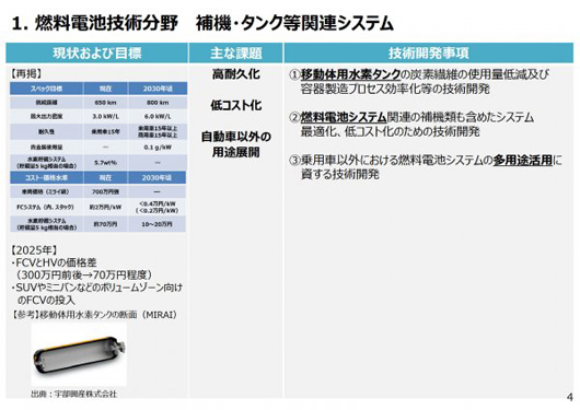其中規定了應優先考慮的技術發展項目;谶@一戰略,將進一步促進技術發展,以實現《氫與燃料電池戰略路線圖》中設定的目標。