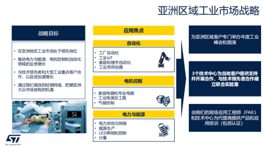 當前,世界經濟的發展引擎正在向亞洲轉移,尤其是以中國為代表的東亞地區。龐大的經濟體量必定蘊藏著大規模的應用需求,因此,積極拓展中國市場正成為各領域跨國企業面對的重要課題之一。為此,ST制定了特別的工業市場戰略,并把戰略目標鎖定為成為市場的領導者。