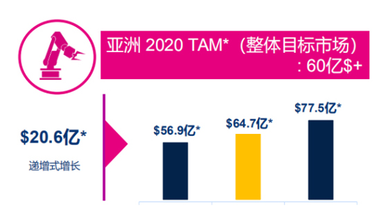 數(shù)據(jù)顯示,亞洲自動化應(yīng)用市場需求,2019至2023年復(fù)合增長率將達(dá)到8%,僅2020年亞洲TAM(整體目標(biāo)市場)規(guī)模高達(dá)64.7億美元。ST(意法半導(dǎo)體)亞太區(qū)功率分立和模擬產(chǎn)品部區(qū)域營銷和應(yīng)用副總裁Francesco MUGGERI(沐杰勵)認(rèn)為,新冠肺炎疫情并未讓市場需求增長完全放緩,而需求出現(xiàn)的差異化,依然讓市場保持強(qiáng)勁的增長勢頭。在某些應(yīng)用中,市場需求正在加速增長,其中智能化(不僅人工智能)以及嵌入式處理,這些市場需求對ST至關(guān)重要。此外,機(jī)器人技術(shù)創(chuàng)新、5G基礎(chǔ)設(shè)施建設(shè)等,這些在其中都發(fā)揮著極大地推動作用。