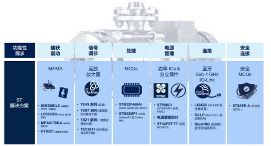 不僅如此,ST可以提供一站式的產(chǎn)品。針對工業(yè)電機(jī)監(jiān)測的各項功能需求,比如振動捕捉,信號調(diào)節(jié),處理,電源管理,連接,安全連接等,ST建立了完善的解決方案,如在振動監(jiān)測方面,對于信號調(diào)理,ST提供所有的模擬設(shè)備和接口。數(shù)據(jù)處理方面,ST有STM32微控制器。為了實現(xiàn)安全的電源管理,ST提供電源管理芯片和分立器件,例如STPMIC芯片,以及分立MOSFET開關(guān)管。對于設(shè)備連接,ST有電力線和無線通信產(chǎn)品,也有安全連接技術(shù)。