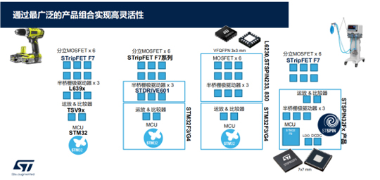 據(jù)悉,ST已有三種主要套件上市,它們可用于醫(yī)療設(shè)備、伺服模塊和電動工具。以電動園林工具為例,ST的STSPIN32F0能夠驅(qū)動最高36V的電池供電設(shè)備。此外,ST還有36V-60V的高壓驅(qū)動解決方案。不僅如此,ST還提供STSPIN芯片和低壓電機(jī)驅(qū)動板,以及STSPIN32系列系統(tǒng)芯片。