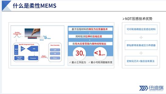“力的交互和電的交互或者聲的交互是不一樣,它有一個作用表面,想要把表面的信息準確地傳達到傳感器,傳感器本身一定要是柔性的。”李灝博士道出了NDT壓力觸控方案的關鍵——柔性傳感器(MEMS),這是一種全新的獨創技術,也正是NDT壓感技術的核心。