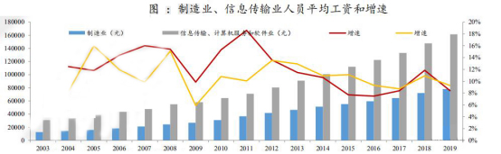 數(shù)據(jù)顯示,2019年中國(guó)制造業(yè)年平均工資近8萬(wàn)元,信息傳輸業(yè)達(dá)到16萬(wàn)元,增速在10%左右。一般工業(yè)企業(yè)每條流水線需要2-4個(gè)品檢員,而一套機(jī)器視覺(jué)系統(tǒng)價(jià)格大約在幾十萬(wàn)左右。在勞動(dòng)力成本上升、人口紅利逐步消失的大趨勢(shì)下,制造業(yè)企業(yè)面臨成本壓力,實(shí)現(xiàn)機(jī)器視覺(jué)普及是大勢(shì)所趨。