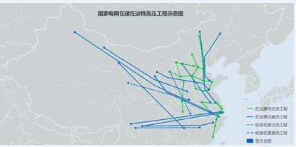 圖1:國家電網在建在運特高壓工程示意圖。(來源:國家電網官網)