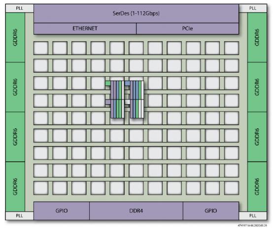 由于數據編排硬件需要適用于各種應用環境,因此對靈活部署有著明確的需求。數據中心應用可能需要使用一個或多個分立的、大容量器件(例如Speedster7t FPGA器件),來為單個電路板上或分布在一個托盤或機架內的多個機器學習引擎路由和預處理數據流。對于尺寸、功耗和成本是主要限制因素的邊緣計算應用來說,采用系統級芯片(SoC)解決方案存在明顯的爭論。