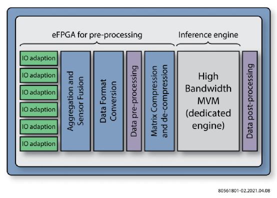 盡管數據轉換可以通過人工智能加速器中的算術內核來執行,但它可能不太適合張量引擎。重新格式化的性質使其適合由基于FPGA的模塊進行處理。FPGA能夠有效地以線速度進行轉換,而不會出現在通用處理器上運行軟件時所產生的延遲。