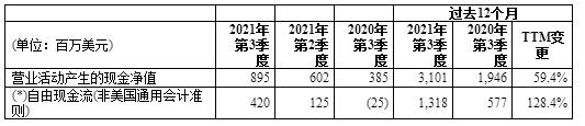 第三季度自由現金流(非美國通用會計原則)為4.2億美元,去年同期為-2500萬美元。