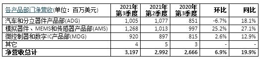 “第三季度凈收入基本上符合我們業務展望的中位數,環比增長6.9%,同比增長19.9%。營收增長的動力來自全球市場需求強勁和我們在個人電子產品市場的客戶合作計劃。其次,受疫情影響,我們馬來西亞工廠的減產程度比預期的嚴重,致使汽車產品營收低于預期,抵消了整體營收的部分增長。