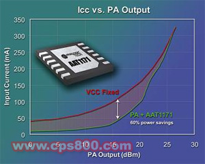 針對移動消費電子器件的電源管理半導體開發商研諾邏輯科技有限公司(Advanced Analogic Technologies)公司宣布推出一種新型全集成電壓調節DC/DC同步降壓轉換器——AAT1171,特別針對WCDMA和CDMA手機中功率放大器(PA)進行了功率控制優化。通過對移動電話中PA工作電壓的動態控制,AAT1171提高了放大器效率并延長了通話時間。