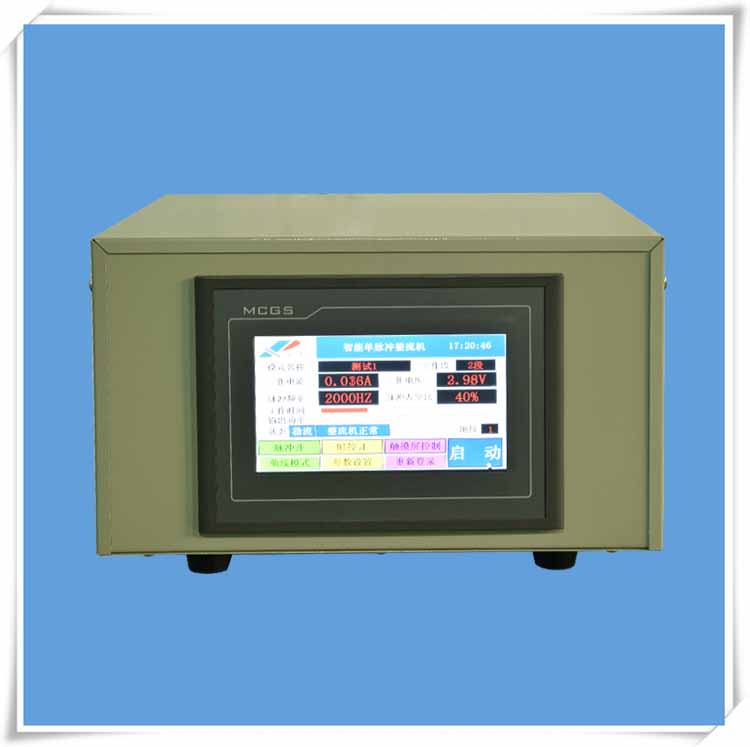 2、本公司電源采用新型技術,針對電源頻率、波形及控制方式深入研發,使其在電鍍過程中大大的降低空隙率,使晶核的形成速度大于成長速度,促使晶核細化;有效的改善結合力,有利于基本與鍍層之間牢固的結合。改善覆蓋能力和分散能力,高的陰極負電位使普通電鍍中鈍化的部位也能沉積,減緩形態復雜零件的突出部位由于沉積離子過度消耗而帶來的“燒焦”“樹枝狀”沉積的缺陷,對于獲得一個給定特性鍍層(如顏色、無孔隙等)的厚度可減少到原來的1/3-1/2,節省原材料。降低鍍層的內應力,改善晶格缺陷、雜質、空洞、瘤子等,容易得到無裂紋的鍍層,減少添加劑;有利于獲得成分穩定的合金鍍層。