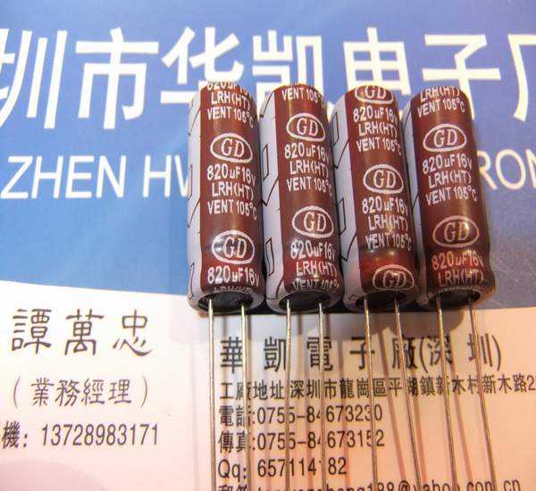 GD長(zhǎng)壽命高頻低阻抗電解電容器LRH(HT)820UF16V 10x20