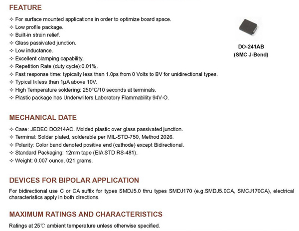 SMDJ SERIES貼片式瞬態抑制二級管產品詳情