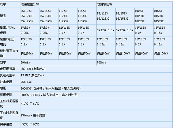 直焊式微型開關電源模塊雙路2.5W、5W系列產品詳情