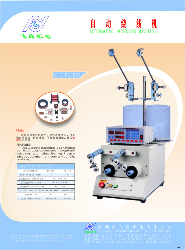 機型FL-468 :本機采用微電腦控制,操作簡便,易學。可實現自動繞線。自動排線,自動換極,自動纏換向器腳。繞線整齊,緊密一致。效率高。適合專業生產企業,大批量生產使用!