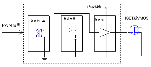 用于驅動一只中等功率MOSFET或IGBT管。適用的器件,封裝大致為TO-220,電流容量范圍在5-25A,電壓容量范圍在50-1000V,柵源電容范圍在2.2-6.8nF。