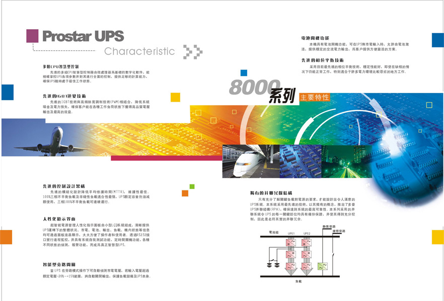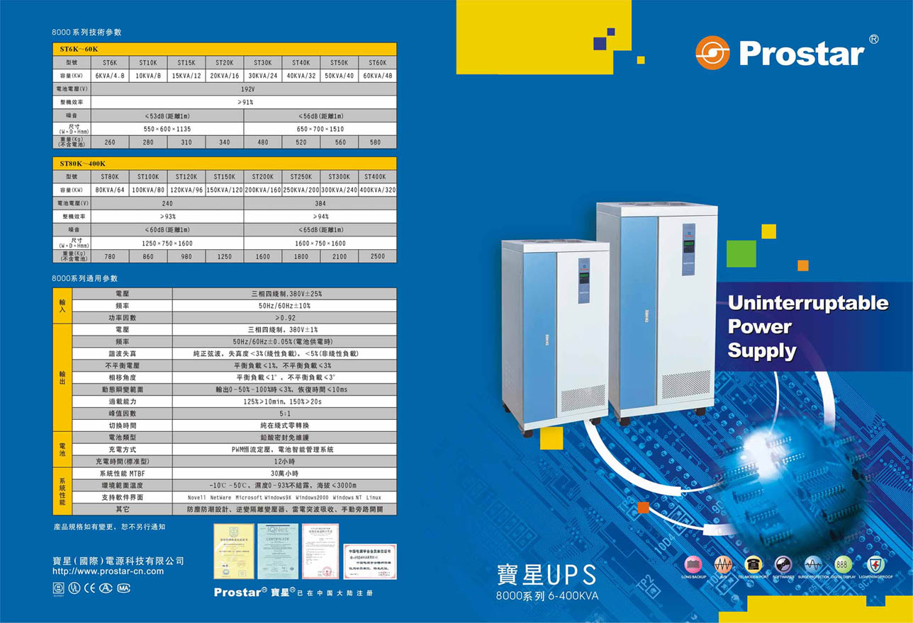 美國寶星工業型8000系列產品(工頻在線三相輸出型)的功率范圍覆蓋6~400kVA,具有以下主要特性: