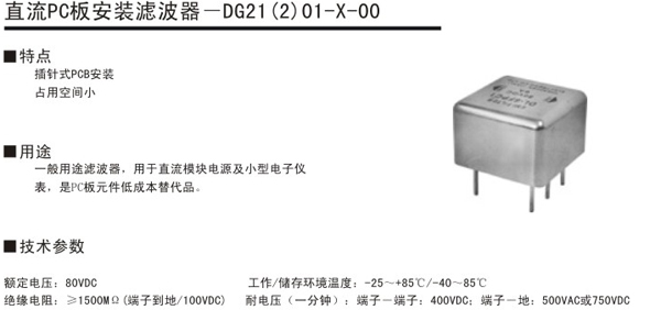 DG21(2)01-X-00直流PC版安裝濾波器產品詳情