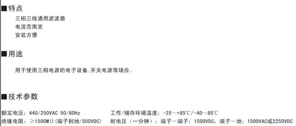 AG31(2)01-X-XX三相三線通用濾波器產品詳情