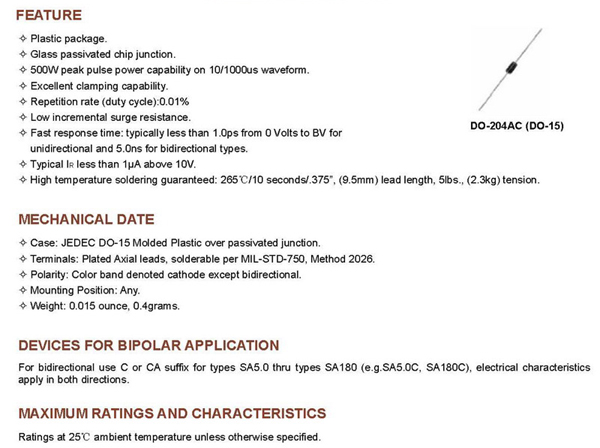 SA SERIES 引線型瞬態抑制二級管