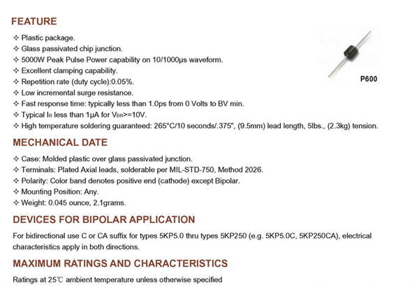 5KP SERIES 引線型瞬態(tài)抑制二級管