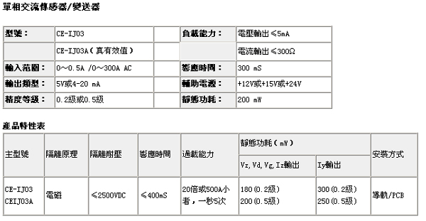 CE-IJ03A無Vg、Vy輸出形式,等級指數現只有0.5級。 選用該輸出類型時,負載電阻應RL≤250Ω。如250Ω<RL≤500Ω時,請用戶在訂貨時注明。二線制4~20單相交流傳感器/變送器