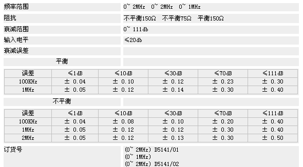 JH5141型衰減器系列一種精密可變衰減器,適用于通信設備的生產和維護。亦可用于科研、生產單位測量各種平衡 不平衡設備、網絡的衰減和增益值,也能對通信設備的頻率特性、振幅特性進行精確的測量。該系列衰減器有兩種0~2MHz,0~1MHz,0~2MHz。