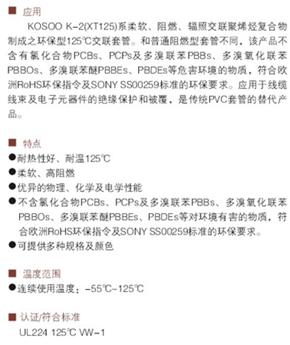 125℃柔軟阻燃聚烯烴交聯套管產品詳情