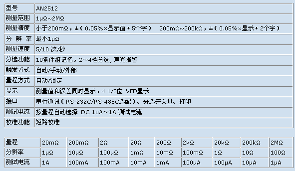 AN2512直流低電阻測量儀