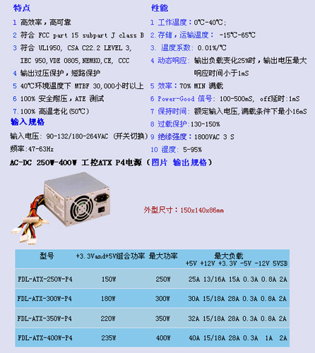 AC-DC 250W-400W 工控ATX P4電源產(chǎn)品詳情