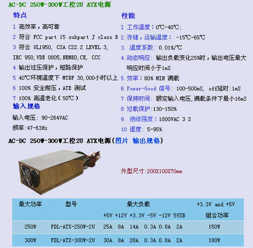 AC-DC 250W-300W工控2U ATX電源產品詳情