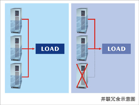 例如:計算機負載為20KVA,就可以使用3臺UPS實現(xiàn)并聯(lián)冗余,如果其中一臺UPS需移出或關(guān)機拆除。其它兩臺UPS會立即支持所有的負載。因此,無論哪一臺UPS出現(xiàn)故障,都會因為您妥善的并聯(lián)冗余的規(guī)劃,而使得貴重的設(shè)備獲得了不間斷的高品質(zhì)電力供應(yīng)。