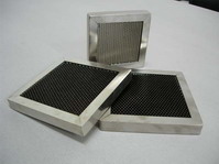 根據用途的不同,可選用不同厚度的通風窗,一是屏蔽機箱上常使用蜂窩孔對邊寬3.18mm深12.70mm,或2mm深6mm的通風窗;二是屏蔽室或屏蔽車上使用蜂窩孔對邊寬6.35mm,深25.4mm的通風窗。通風窗表面可選擇鍍鎳、鍍鋅、化學鍍鎳等表面處理。框架的外形和安裝孔尺寸可訂制。