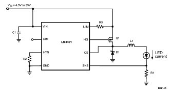 LM3401芯片設有可編程的過流過壓保護功能,而且還可通過DIM輸入引腳利用PWM輸
