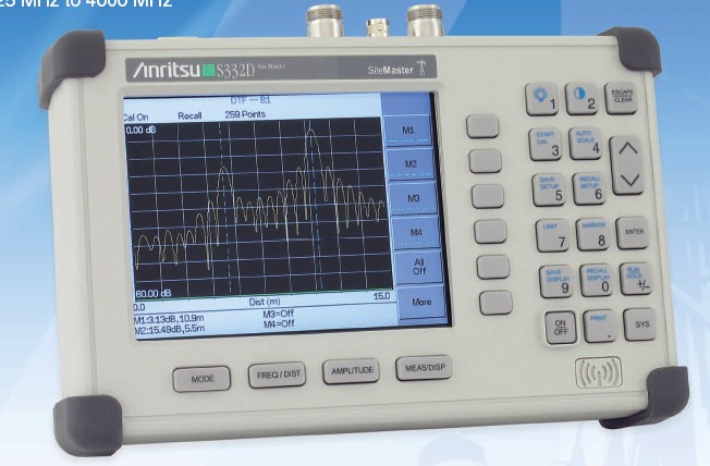 Site Master S331D 和 S332D 傳輸線和天線分析儀,能夠測量回波損耗或駐波比, 電纜損耗和長距離故障定位,這使得我們能夠快速評估傳輸線和天線系統的狀況, 并且加快新基站所需要的安裝調試時間.