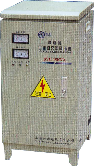 SVC single-phase high accuracy full automatic AC voltage stabilizers is made of the contact type self-coupling voltage regulator, servo motor, automatic control circuit and so on. When the voltage of the network is not steady or the load varies, the automatic sampling control circuit makes a signal to drive the servomotor to adjust the position of the carbon brush of the self-coupling voltage regulator so as to have the output voltage regulated to the rating and to obtain the steady state.