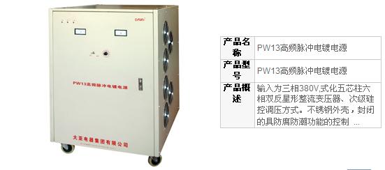 高頻開關電鍍電源:輸入為單相220V、50HZ。不銹鋼外殼,封閉的具防腐防潮功能的控制電路,在惡劣環境下安全可靠。輸出為高穩定的30KHZ高頻方波,亦可經容抗濾波使之輸出為低紋直流(PW6L型)。顯著的節能,效率達到90%以上。穩壓、穩流自動轉換:穩壓精度±1%,穩流精度±2%。有近控與遠控雙重控制,遠程控制可配多種功能控制盒,靈活方便。具過載、過流、過熱、電源欠壓、超壓、輸出短路等多重保護功能,安全可靠。額定電流:50A,100A,150A,200A,300A等;額定電壓:6V,12V,15V,18V,24V等.