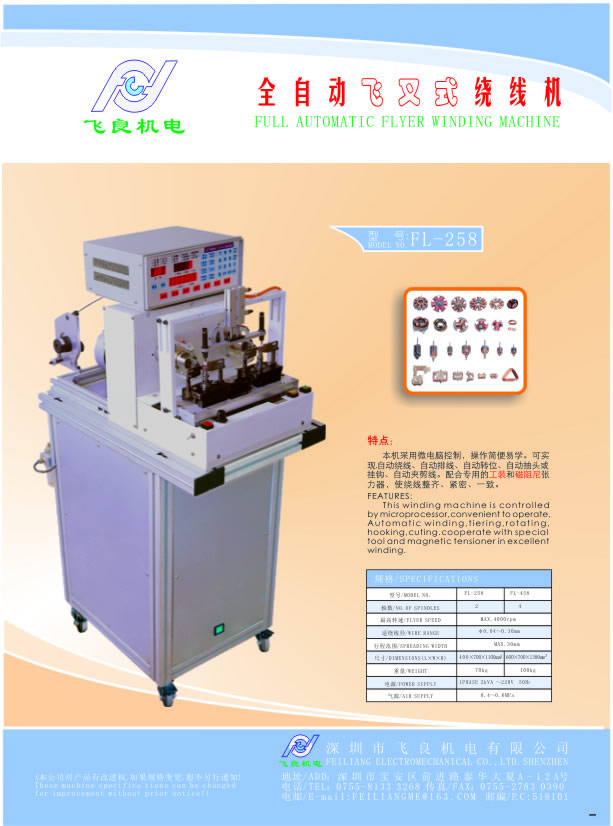 本機采用微電腦控制,操作簡便易學.可實現自動繞線,自動排線,自動轉位,自動抽頭或掛鉤或纏換向器腳,自動夾剪線.配合專用的工裝和磁阻尼張力器,使繞線整齊,緊密,一致.