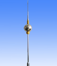 球狀型雷電接閃器,是一條無(wú)感性,低阻抗的金屬內(nèi)導(dǎo)體引下線,把接閃后的雷電電流輸送到大地,并使被保護(hù)的天線鐵塔或建筑物不發(fā)生側(cè)擊和帶電。在大多數(shù)的情況下靜電場(chǎng)電纜的沖擊小于鐵塔阻抗的1/10,避免了建筑物或鐵塔帶電,消除閃絡(luò)。