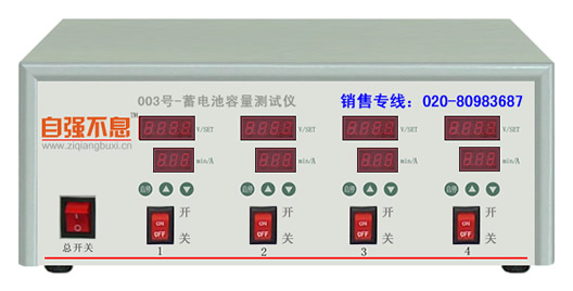 2.003號蓄電池容量測試儀應用了新一代高性能的單片機技術,使用我公司自行開發之控制軟件,其控制精度、質量、功能均達到國際一流水平。儀器采用8位微電腦處理器心片、進口元件、大規模集成電路,大功率電子負載,功能穩定;利用數控技術,能準確檢測電池容量,具有電池正負極反接、短路、過壓保護功能。高亮度數碼顯示管、使您能對蓄電池檢測過程中的各種必需數據一目了然,通過0~10安的恒流放電同時自動檢測4只12伏電池容量。放電電流0~10安可調,可根據電池容量的大小來調節放電電流;放電終止電壓0~12伏可調,實現您深度放電夢想!自動記錄放電時間,4路獨立輸出,每路獨立控制,互不干擾。是目前國內外檢測電池容量最好檢測設備。通過此設備,可以準確檢測每個電池的容量,有利于進行電池的篩選及重新配組。。