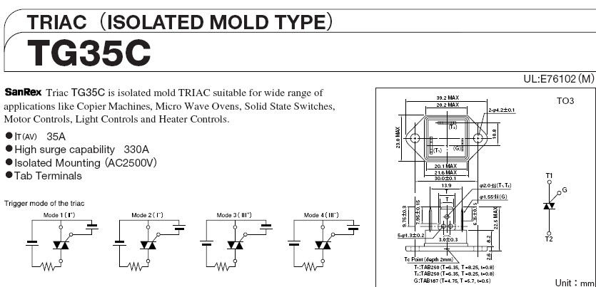 SANREX可控硅TG35C60 TG25C60 TG16C60