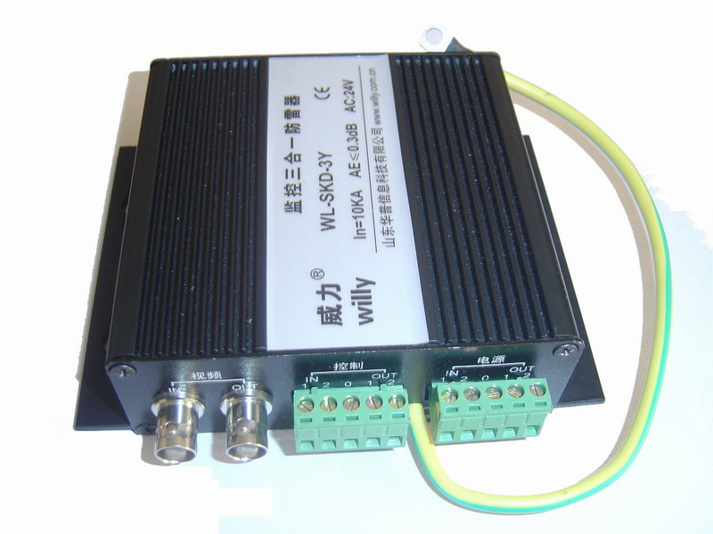 威力三合一防雷器使用說明WL-SKD-3Y三合一防雷器為視頻信號(hào)、控制信號(hào)和電源防護(hù)合為一體,為監(jiān)控系統(tǒng)防雷設(shè)計(jì)和安裝提供了方便。威力三合一防雷器的三種信號(hào)均設(shè)計(jì)成兩級(jí)防護(hù),防雷效果優(yōu)于同行業(yè)其他產(chǎn)品,帶寬高:大于18M,衰減小:小于0.5db。一、主要性能指標(biāo)1、視頻信號(hào) 衰減(插損)≤0.5db 帶寬0-20M In≤10KA 限制電壓: 線間≤18V。2、控制信號(hào) 衰減(插損)≤0.5db 帶寬0-20M In≤10KA 限制電壓:線 間≤18V。3、電源 In≤10kA+6Ka/每線。電源分為DC24V、DC48V、AC24V、AC48V AC220V。限制電壓也不盡相同。二、WL-SKD-3Y三合一防雷器的結(jié)構(gòu) 威力三合一防雷器分為室內(nèi)型和防水型兩種,防水型主要用于沒有遮擋的露天安裝,其內(nèi)部為密封結(jié)構(gòu),接頭分別為:視頻信號(hào)BNC、控制信號(hào)和電源為航空插。 室內(nèi)型的接口為:視頻信號(hào)BNC、控制信號(hào)和電源為RS485口。三、安裝WL-SKD-3Y三合一防雷器外殼帶有安裝孔,用螺絲固定即可。每種信號(hào)接口分為進(jìn)(IN)和出(OUT),出端(OUT)接到被保護(hù)設(shè)備,進(jìn)(IN)接外來信號(hào)線。 RS485口為5位一組,進(jìn)端(IN)1(2)和出端(OUT)1(2)是對(duì)應(yīng)的。0為內(nèi)部接地,在使用屏蔽線時(shí),屏蔽層接入該口。 WL-SKD-3Y三合一防雷器信號(hào)防護(hù)對(duì)地的限制電壓有:18V、40V、100V、180V、260V和350V。在沒有特殊要求時(shí)一般做成180V或260V。需要低限制電壓時(shí)(小于100V)應(yīng)當(dāng)提出要求,在安裝時(shí)地線(PE)應(yīng)當(dāng)與被保護(hù)設(shè)備的金屬外殼可靠連接。 防水型防雷器在安裝時(shí),插口應(yīng)當(dāng)向下做防水處理。