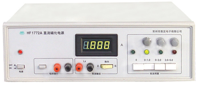 | 主要技術指標: 型號 參數 HF1772A HF1773 穩流范圍及誤差 -5.5A— +5.5A, 分四檔 -10.0A— +10.0A, 分四檔 0 0—1.2A 0—2.0A 1.5—5.5A 0 0-2.0A 2.0-5.0A 5.0-10.0A ±(1%+1個字) ±(2%+1個字) ±(1%+1個字) ±(2%+1個字) 電流指示及誤差 31/2位LED, |