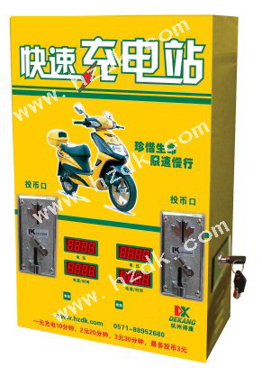 雙路投幣式電動車快速充電站是一款具有智能語音提示,充電剩余時間顯示及電池電壓顯示模塊的快速充電設備。該設備可快速的對兩組蓄電池進行充電,投幣一元充電時間10分鐘,騎行15分鐘,快速有效解決電動車行駛途中沒電的困難。