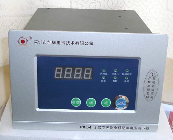 深圳市旭振電氣技術有限公司生產的全數字無刷勵磁電壓調節器PXL-4專為中小型發電機低壓機組(水輪發電機和柴油發電機通用)開發的微機勵磁調節器。它具有結構簡單,性能可靠,人機界面優良,操作簡單等優點。其中核心控制部件平均無故障時間將近10年。該調節器幾乎把所有調節功能軟件化,其技術特點包括: