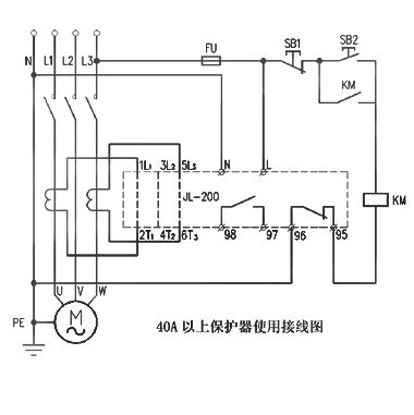 JL-200缺相保護器規格:直接接線:1A(0.2A~1A);5A(1A~5A);20A(4A~20A);40A(8A~40A);
