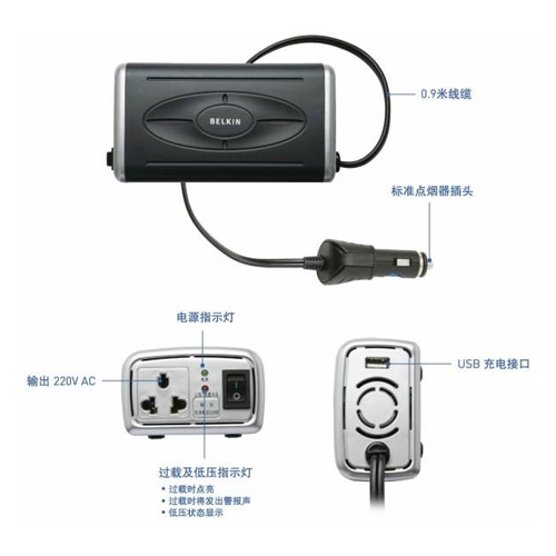 車載逆變器利用汽車點煙器的12V電源,轉換成220V電源,給辦公、通訊、娛樂設備等使用220V電壓的設備提供電源,是駕車外出商務、旅游的常備工具。