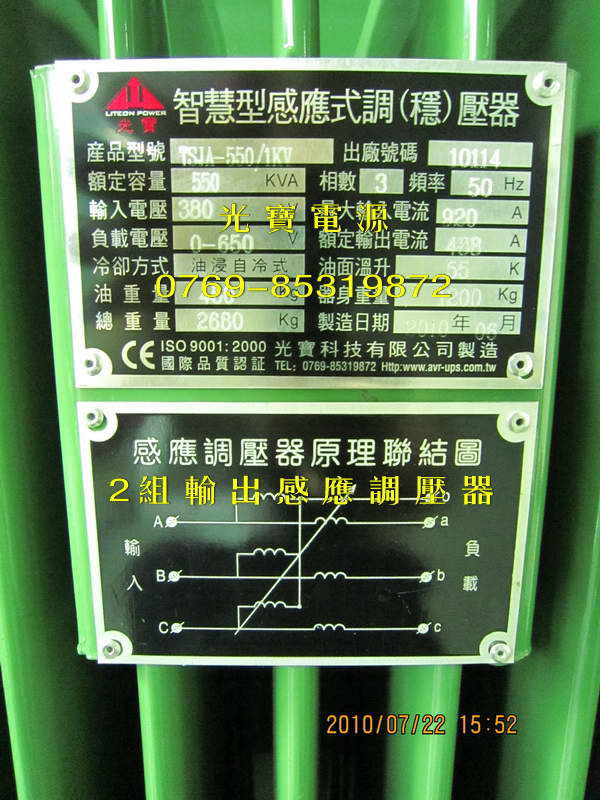 感應式是唯一可單機做超大型容量之調壓器,可生產1000KVA以上機型