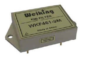 EMI 濾波器是為減小DC/DC 變換器在電源線的高頻噪聲而專門設計,WKF461-3 濾波器與偉京電子密封系列變換器配套使用,可使電源線上的噪聲傳導極限符合GJB151 之CE102 或MIL-STD-461D 之CE102的要求。